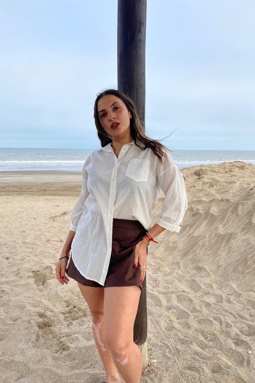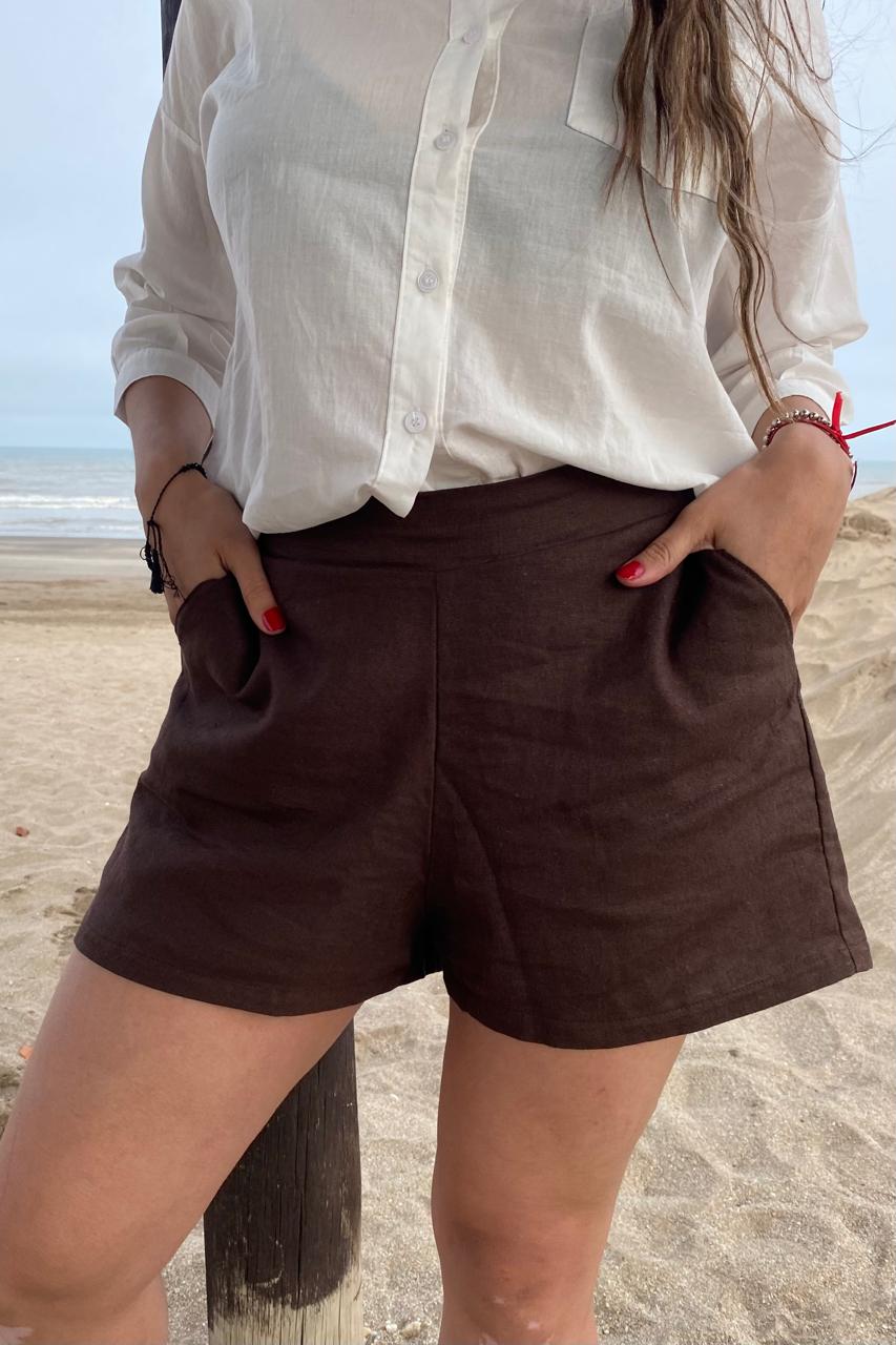 Look de Verano Clásico: Combiná el short con una camisa de lino blanca (como en la foto) para un conjunto fresco, minimalista y súper sofisticado.