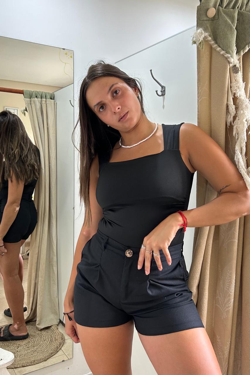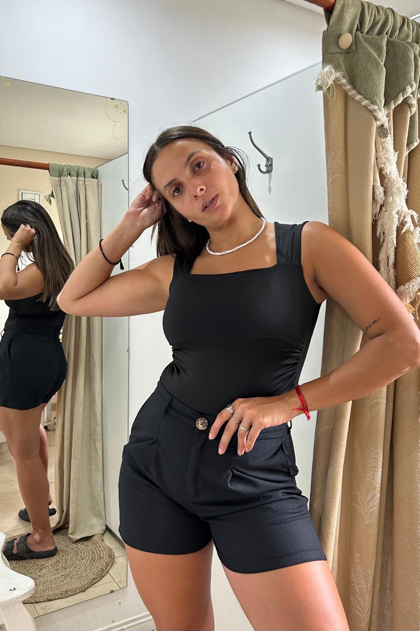 Look Urbano Minimal: Combiná el short con la Remera de Lycra Essential y una gargantilla de perlas para un outfit limpio y moderno.
