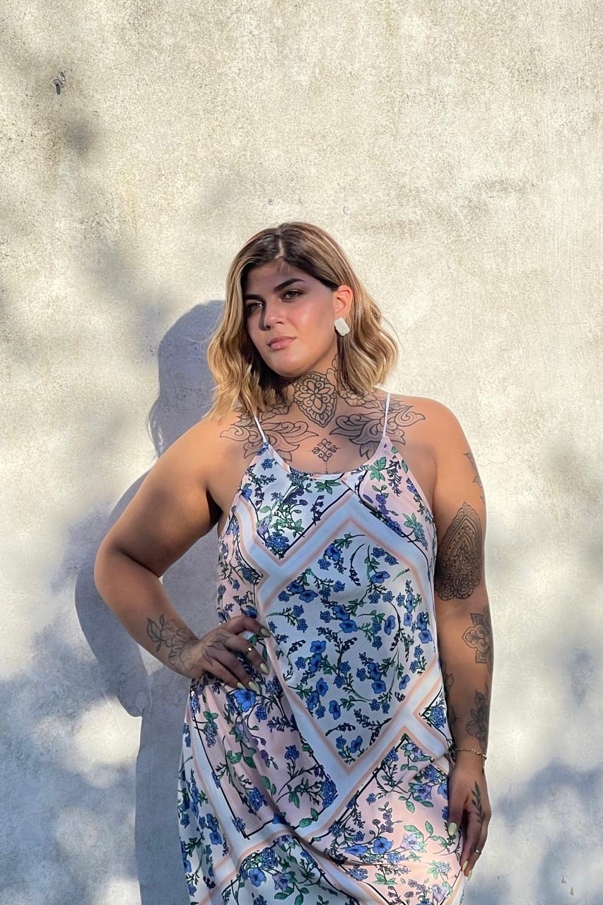 Movimiento y frescura en cada paso. Nuestro vestido largo con terminacion en punta es la pieza definitiva para quienes buscan un look romántico y etéreo. Con una estampa floral multicolor sobre un fondo suave, este modelo destaca por su caída ligera y su diseño pensado para realzar la feminidad con total comodidad.