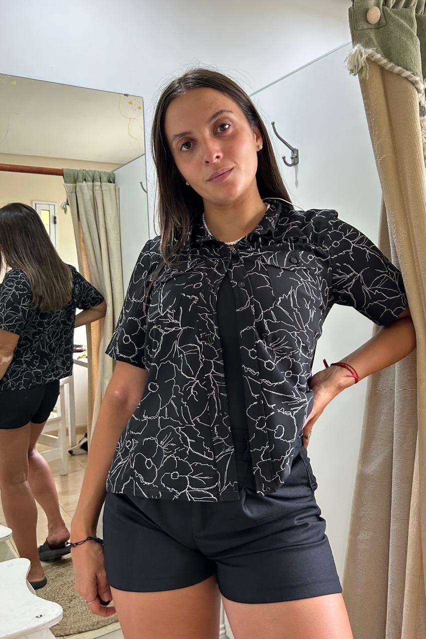 Nuestra camisa Flora combina la sobriedad del negro con un delicado trazo floral en blanco, creando un contraste moderno y atemporal. Es esa prenda que aporta versatilidad y estilo, adaptándose tanto a un día de oficina como a una tarde de relax.