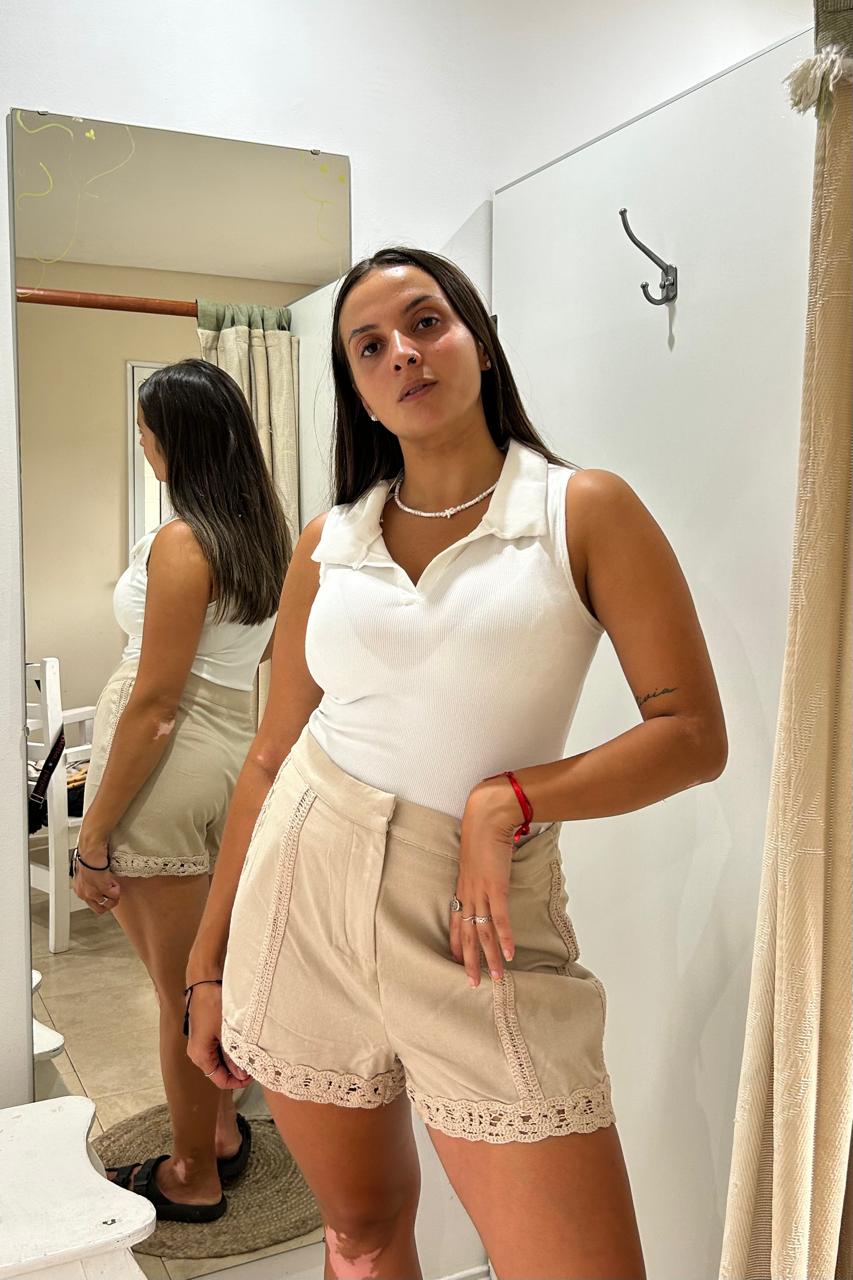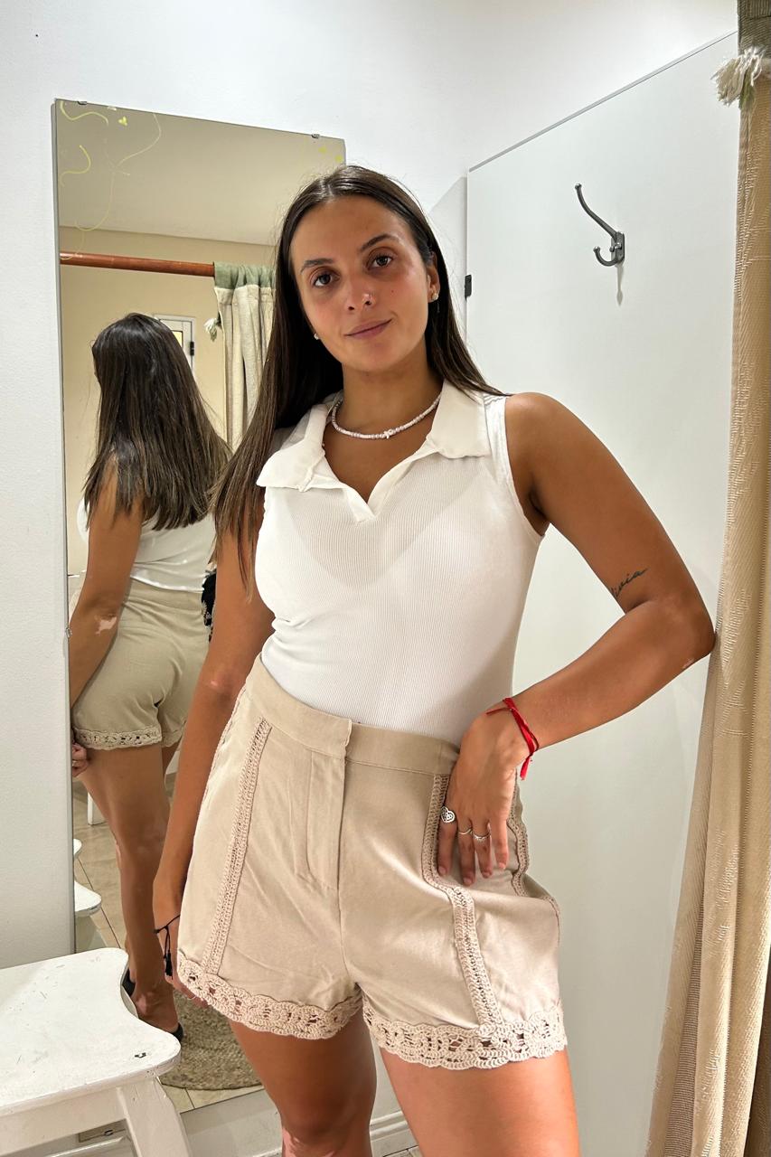 Total Look Blanco & Beige: Combiná el short con un top blanco liso (como la Remera de Morley estilo Chomba) para un outfit luminoso y fresco.