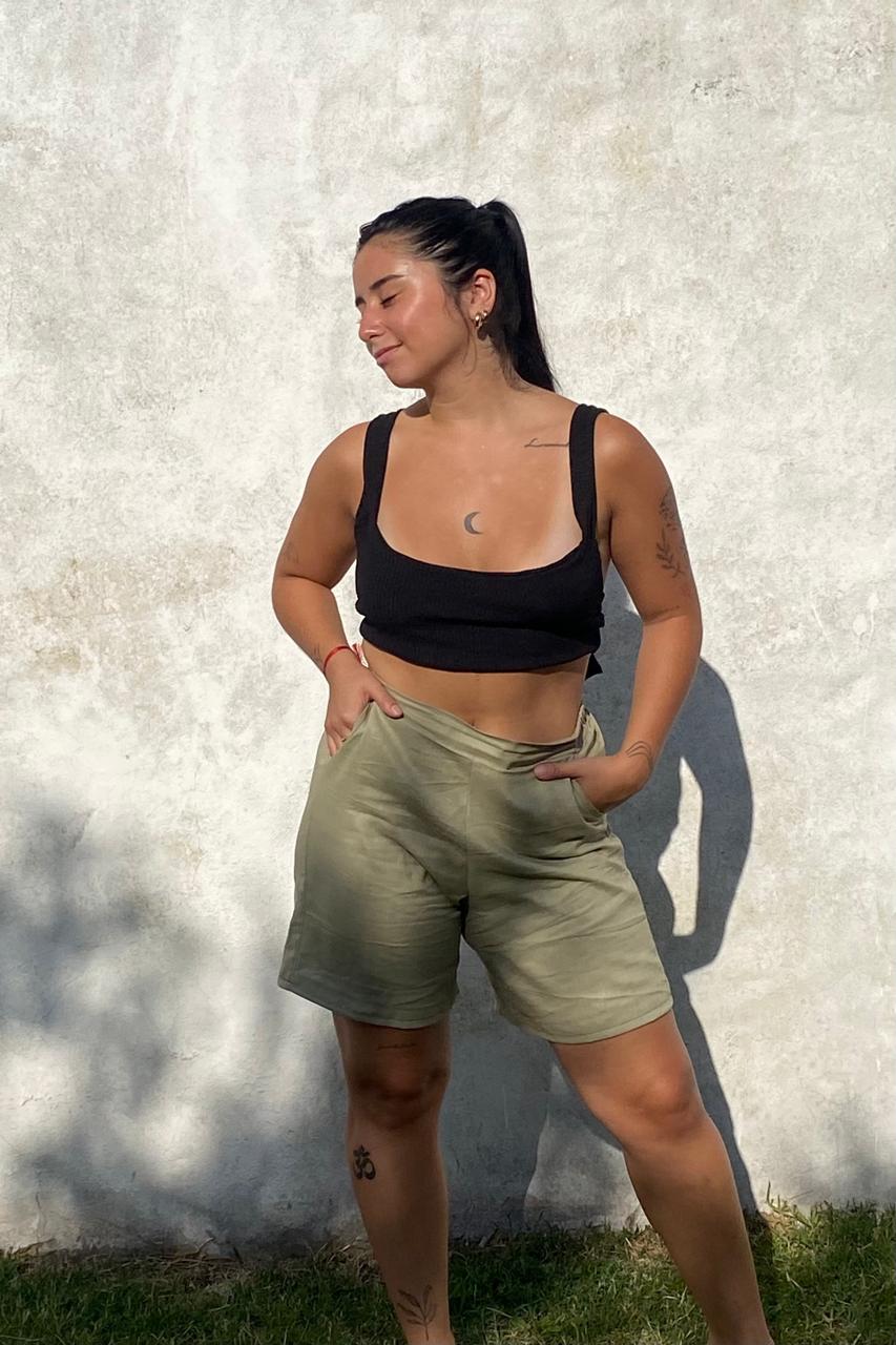 La libertad del lino en un diseño versátil. Nuestra bermuda es la prenda que redefine el confort veraniego. Con un corte clásico y un tono verde seco ultra tendencia, esta pieza de fabricación propia es ideal para quienes buscan una prenda fresca que se adapte tanto a un look urbano como a uno relajado de playa.
