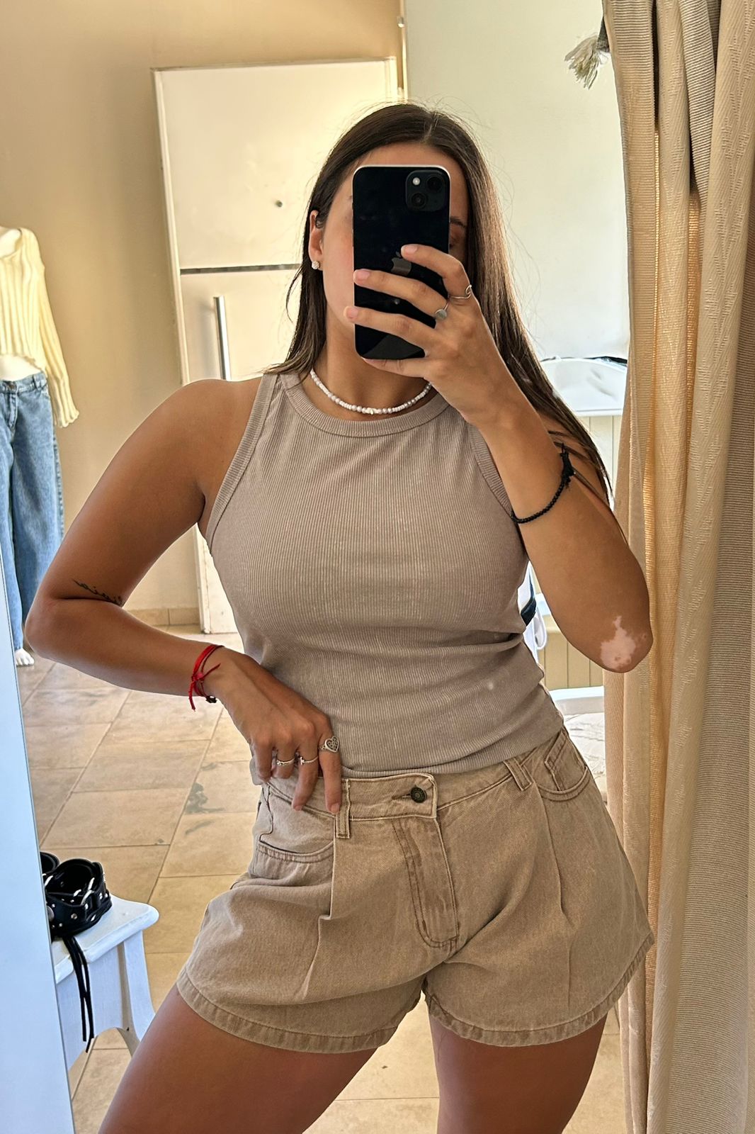 Confeccionado en un denim de alta calidad con un tono marrón tierra lavado, esta prenda destaca por sus pinzas delanteras que aportan volumen, estructura y un aire sofisticado que lo diferencia de cualquier short tradicional.