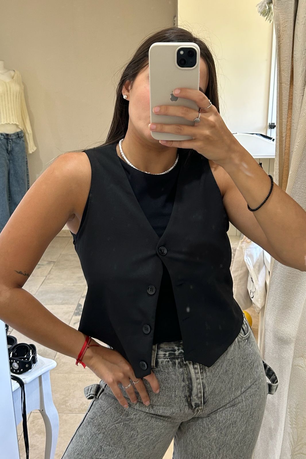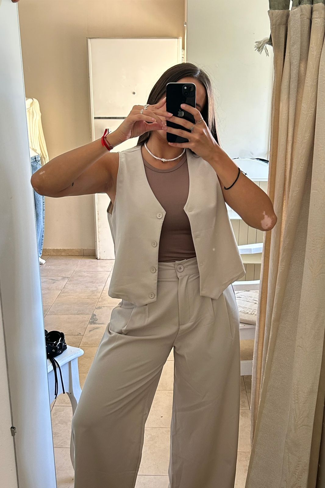 Chaleco sastrero en juego con el pantalon palazzo sastrero liviano con pinzas en la delantera.
